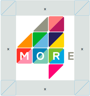 (예)영국의 TV채널 More4 로고의 경우에는 x가 표시된 부분을 클리어 스페이스로 지정하고 있습니다.(좌)