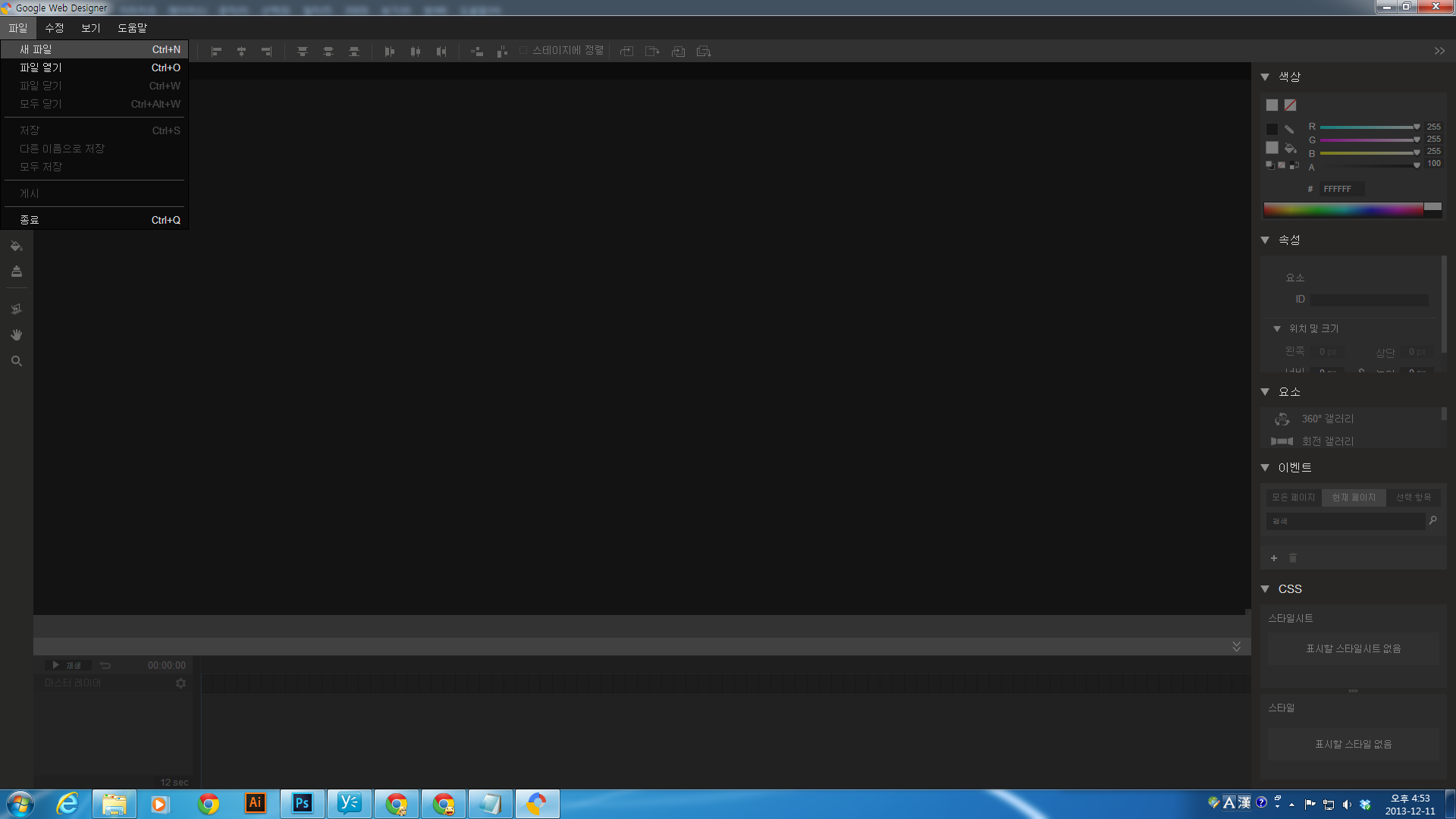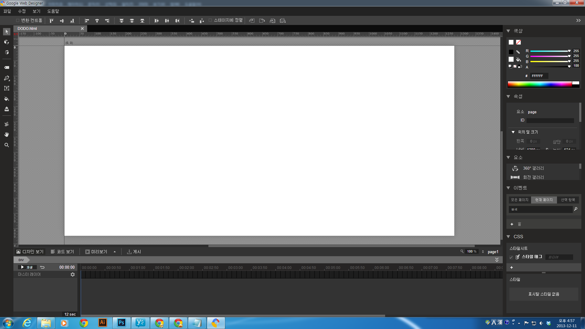 사용해보니 마치 일러스트레이터 + 플래시 + 드림위버 미니 버전 같습니다.