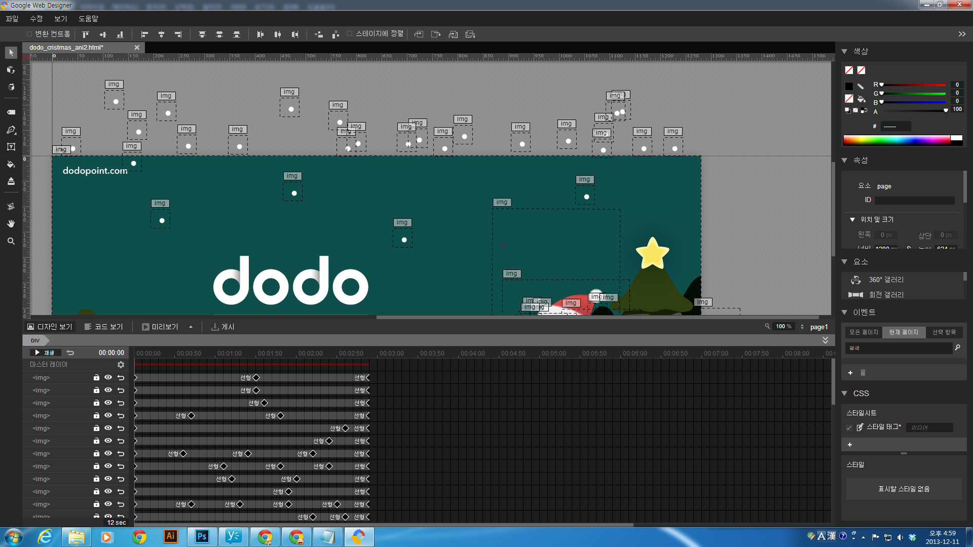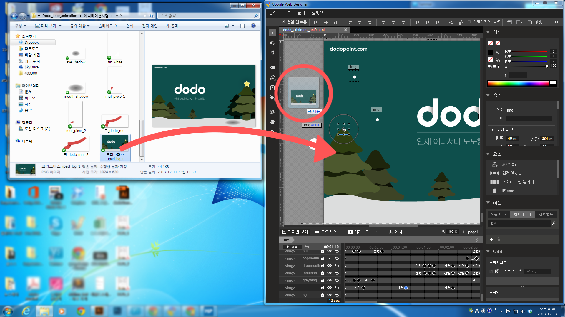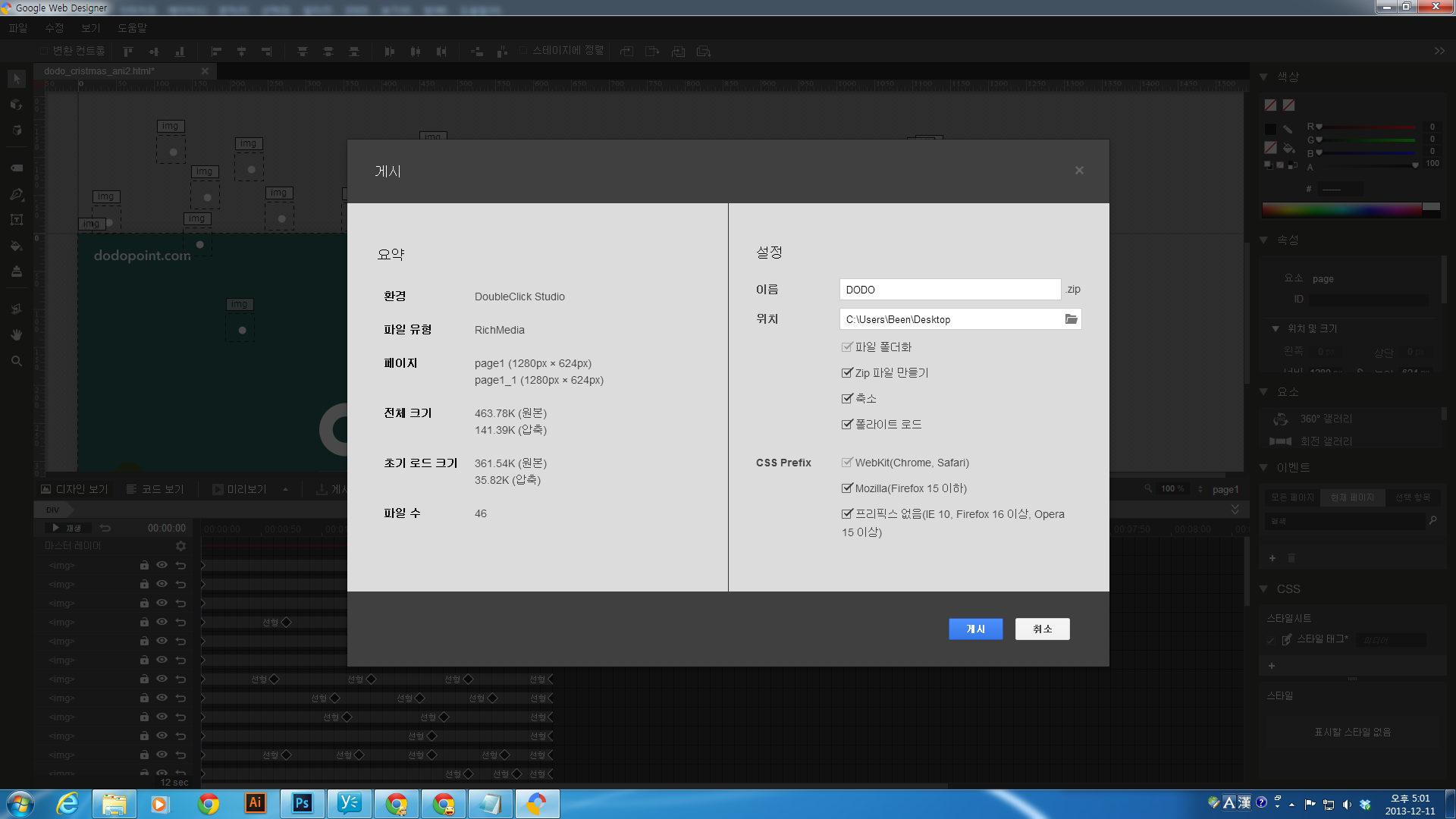 원하는 이름과 위치를 지정해 주고 파란 게시버튼을 누르면 끝! 이렇게 완성된 도도 크리스마스 애니메이션은 곧 혹은 이미 도도 매장의 iPad로 확인하실 수 있습니다. ^^ (아쉽게도 갤럭시 노트 10.1은 프레임 문제로 지원하지 않아요.) 만약 구글 크롬이나 파이어폭스를 쓰신다면 PC에서도 확인하실 수 있습니다.