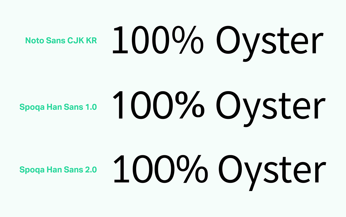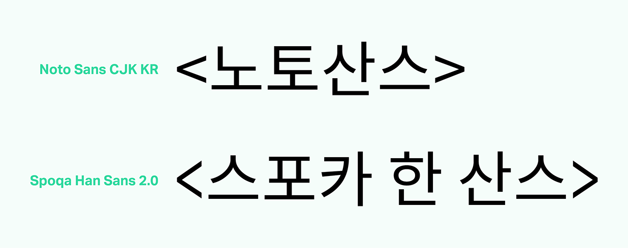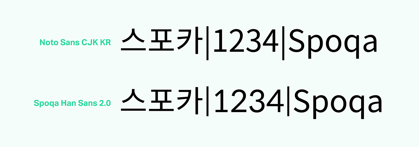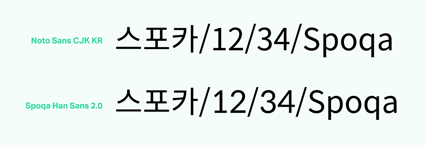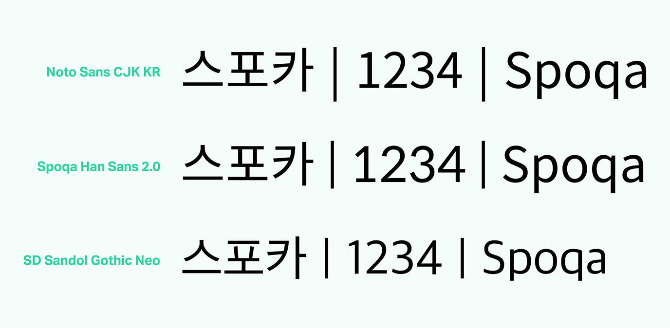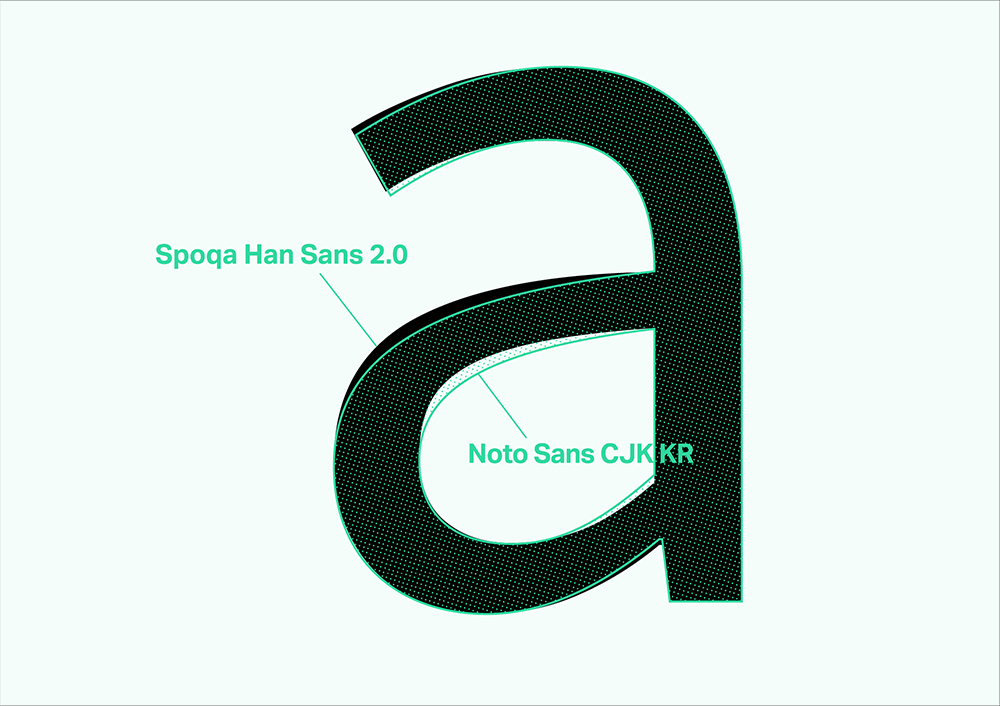 스포카 한 산스가 어디에 주로 쓰일 것인지 명확했고, 철저히 그 조건에 부합하려고 노력했습니다. 노토산스CJK KR은 한글을 디자인한 디자이너가 영문이나 기타 글리프를 직접 디자인한 게 아니고 오픈산스를 가져와 붙인 것입니다. 물론 한글과 영문을 함께 쓰기에 부족함이 없도록 노력한 흔적들이 많고, 디자이너라면 이를 잘 찾아 적용할 수 있을 겁니다. 하지만 일반인들이 이런 방법을 알기는 힘들며, 앞서 말했듯 범용 애플리케이션에서 적용하기엔 어려운 점이 있습니다. 그럼에도 불구하고 노토산스CJK KR은 장점이 압도적인 서체이고, 감사하게도 오픈소스로 풀리는 바람에 우리 같은 아마추어도 서체를 새로 만드는 수고에 비해 아주 적은 노력만을 들여 개조할 수 있었습니다. 우리가 개발자 문화에 친숙했고, 오픈소스란 개념이 낯설지 않았던 덕택에 이런 문명의 혜택(?)을 입을 수 있었던 것입니다.