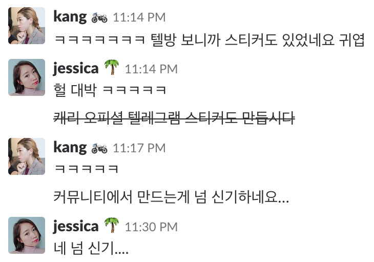 이렇게 완성된 19종 캐리프로토콜 텔레그램 스티커! 텔레그램 사용자라면 여기에서 받을 수 있습니다. 수고해주신 안정빈 디자이너께도 감사를 표합니다.