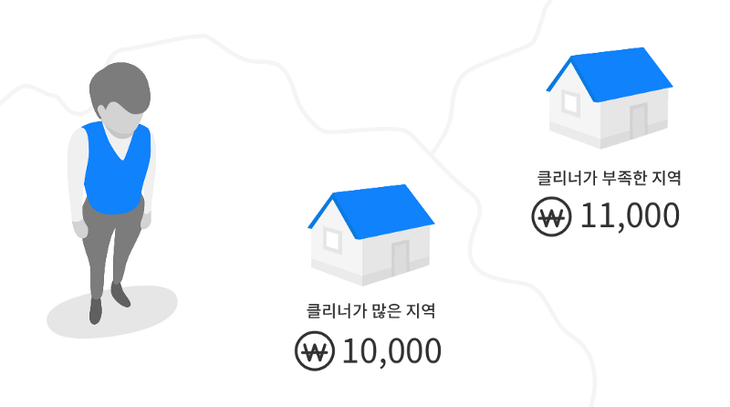 매 주마다 미소를 이용하고 있는 정기 고객님들에게도 좋은 소식입니다. 미소의 정기 고객님들은 클리너가 자주 바뀌는 것에 대해 달가워하지 않습니다. 만약 클리너님이 정기 고객님의 집에 방문하기 편하다면, 훨씬 더 많은 클리너님이 정기 고객님 집에 방문하는 것을 정말 좋아하겠죠. 이렇게 이동 경로를 줄여준다는 것은 정기 고객님의 우려 또한 줄여드릴 수 있다고 생각합니다.