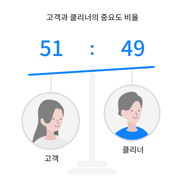 미소는 청소를 예약하는 고객과 청소를 하는 클리너 모두 고객이라고 생각합니다. 하지만 고객을 위해 일한다고 말할 때는 청소를 예약하는 고객을 의미합니다. 청소를 예약하는 고객을 만족하게 할 수 없으면 클리너들에 줄 일자리가 없어지고 이는 곧 미소에도 좋지 않은 결과를 가져다 줍니다. 여기서 고객과 클리너의 중요도의 비율은 51:49 정도이지만 고객과 클리너의 구분은 정말 중요하다고 생각합니다.