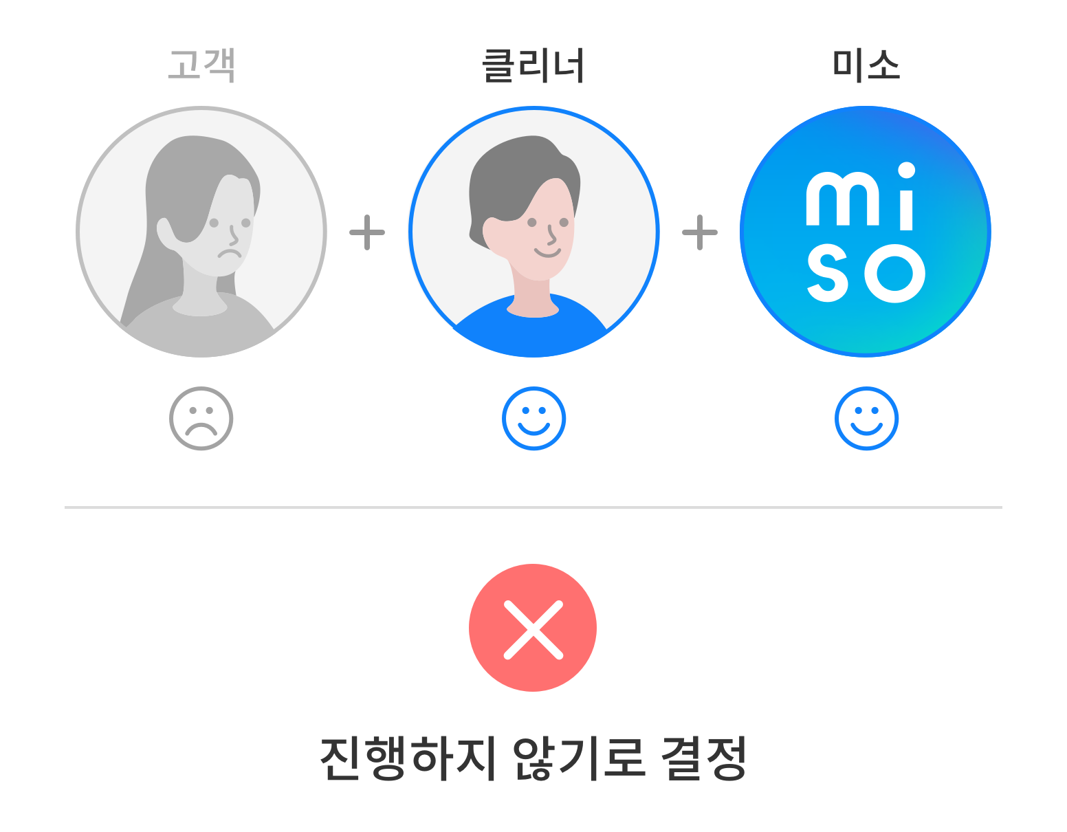 장기적으로 해당 사안은 고객, 클리너, 미소 모두에게 좋은 경험을 줄 수 없을 것이라 판단하여 진행하지 않기로 결정하였습니다.