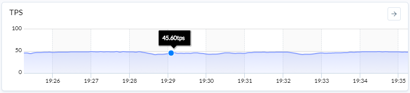 위에 그림에 두번째 행을 보시면 5개의 트랜잭션이 실행완료된 것을 볼수 있습니다. 이런 경우 TPS를 구하는 방법은 5 transaction / 5 sec 이므로 결과값은 1 TPS 가 됩니다. (와탭의 TPS 지표는 좀더 복잡하게 계산합니다. 와탭은 챠트의 추세를 보여주기 위해 5초 간격으로 30초 평균 TPS를 보여주고 있습니다.)