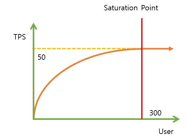 Satuartio Point가 넘으면서 사용자가 몰리면 TPS가 고정된 상태에서 응답시간이 길어지게 됩니다.