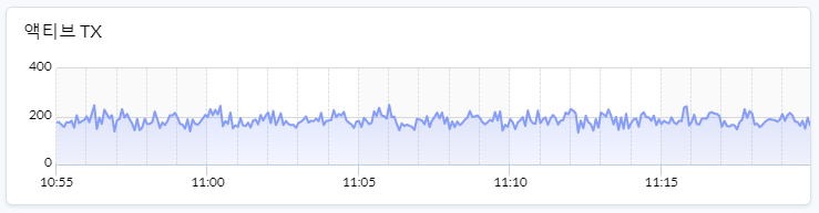 트랜잭션의 요청건수, 대기건수(Active Service), 완료건수가 상단에 나옵니다. 하단에는 대기건수만(Active Transaction)를 보여주고 있습니다.