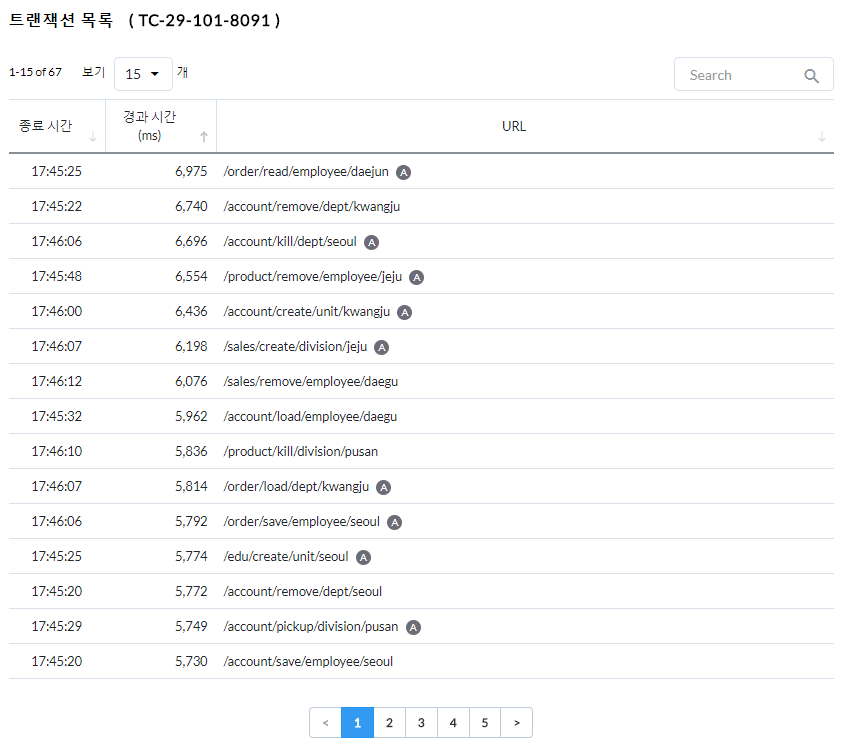 사용자가 응답속도 분포도를 통해 선택한 트랜잭션 목록#와탭랩스 #개발자 #개발팀 #인사이트 #경험공유 #일지