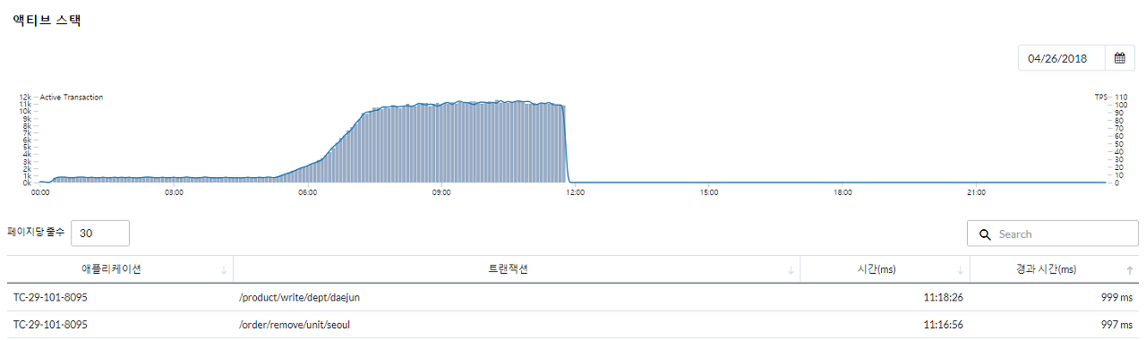 마지막으로 액티브 스택입니다. 액티브 스택은 WAS 서버와 URL 그리고 발생 시간을 기준으로 저장된 콜스택의 정보를 보여줍니다. 서비스 성능이 떨어진 시간대의 콜스택 정보를 확인 함으로써 메소드 구간에서의 튜닝 정보를 제공합니다.