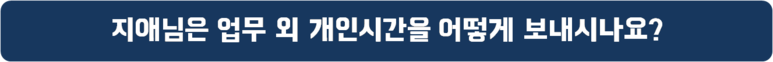 퇴근하고 혼자만의 시간을 많이 갖는 편이에요! 혼자 영화도 보러가고, 몸이 찌뿌둥 할 땐, 요가도 즐깁니다!