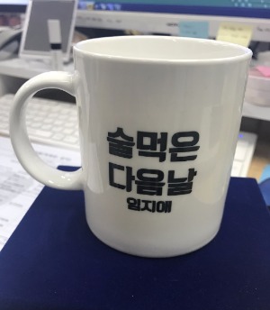 지애님 책상에 고스란히 올려져 있는 개인 컵