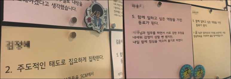 매주 금요일, 지난 일주일동안 아래 5가지 행동에 대해 고민하고 사례를 공유합니다!