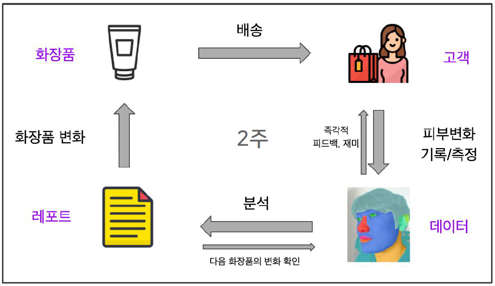 결국 화장품을 쓰는 이유가 피부를 좋게하기 위함이잖아요. 저희는 소비자에겐 헛돈 쓰지않고 적확한 화장품으로 피부를 좋게하는 기술을, 생산자에겐 그런 화장품을 만들어 제대로 된 타겟에게 마케팅하고 판매하는 기술을 제공하고 있어요.