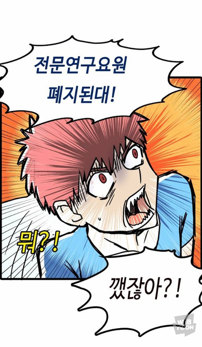 A. 4년 전 카이스트에서 아티스트 레지던시 프로그램에 참여중이셨던 최삡뺩 작가와 인연을 맺게 되었다. <공대생 너무만화>의 자문으로 친구를 소개하는 과정에서 자연스럽게 친구와 함께 자문을 맡게 되었다. 사실 자문이라고 해서 거창한 것은 아니다. 공대 개그에 현실성을 불어넣는다거나 디테일을 살리는 정도다. 예를 들어 기절해 있던 공대 남학생이 이런 말을 들으면 너무 깜짝 놀라 눈을 번쩍 뜰 것 같은 대사를 요청받았다. 마침 당시에 전문연구요원 제도 존폐에 대한 얘기가 오가고 있었고, 이에 ‘전문연구요원 폐지됐대'라는 대사를 만들었다. 이 웹툰은 컷툰 형식으로 구성되어있는데, 해당 컷에 수많은 댓글이 달리는 것을 확인할 수 있었다.