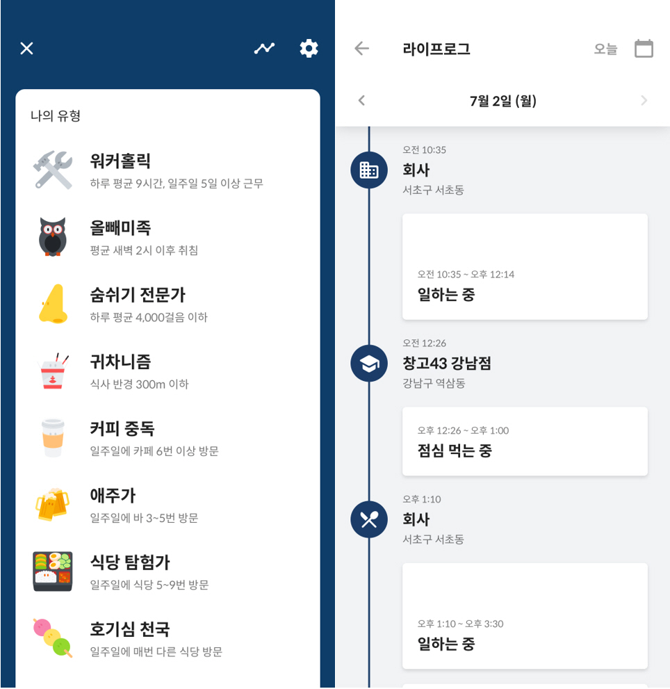 < 사용자 패턴을 분석한 유형 결과 예시, 출처: 스켈터랩스 한지예, 이해연 디자이너 >