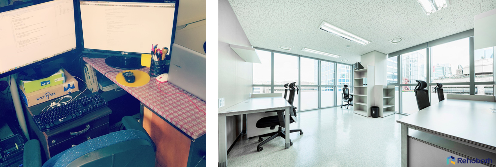 '모멘트팩토리 첫 사무실' ' 현재 사용하고 있는 강남역 사무실'