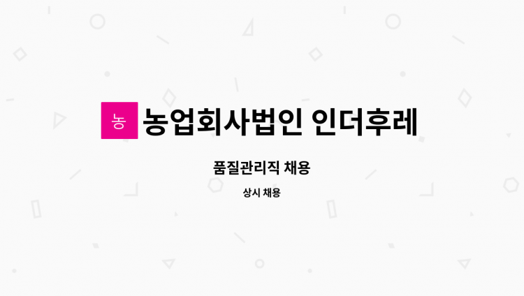 무관련 김치류제조및 농산물 가공처리 회사로 1 명 규모의 중소기업입니다.