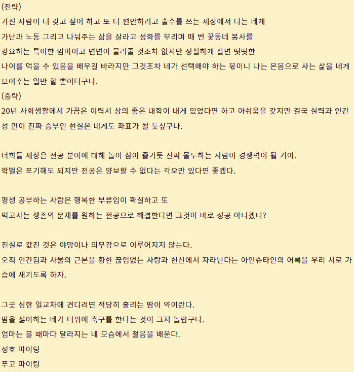 [대안학교 입학 후 사랑하는 어머니가 보내주신 편지. 나도 이런 편지를 쓸 수 있을까.]