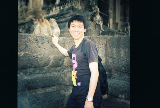 [길원숭이 손을 소심히 잡고 기뻐하는 동네 바보 형입니다. 부적응이지만 해치지 않아요. 사진제공: Adit Sombunsa. Lopburi, Thailand.]