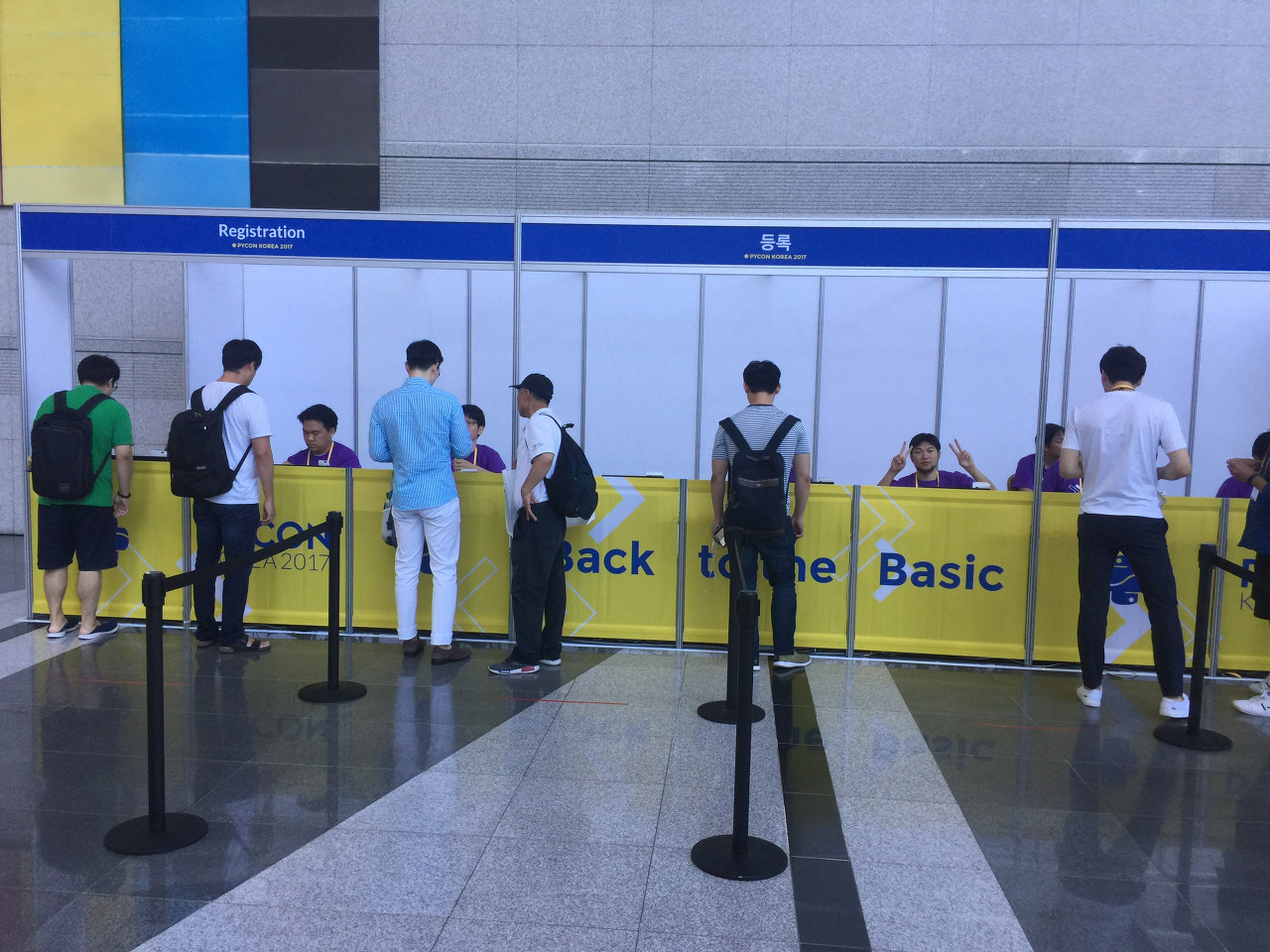 코엑스에 도착해서 파이콘 행사장으로 가까이 가면 갈수록 백팩을 메고, 면바지를 입고, 영어 글자가 쓰인 티셔츠를 입은 사람의 비율이 높아지는 것으로 보아 내가 제대로 찾아가고 있구나 라는 생각이 들었다.