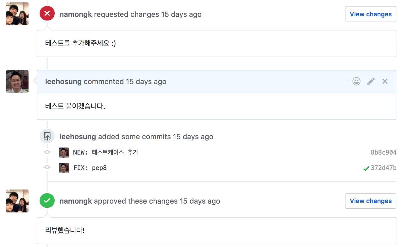 바뀐 게 무엇이냐고 하면, PR에서 '공식적인 잔소리'가 가능해졌어. 이게 테스트를 작성하다 보면 자괴감이 들 때가 있거든. 내가 봤을 때 너무나 자명한 것에 대한 테스트를 작성할 때야. 그런데 이 테스트라는 것이 지금의 내 기준으로 보면 안 되고, 다른 누군가 그리고 혹은 미래의 나를 기준으로 바라봐야 하거든. 그래서 자괴감을 느낄 시간에 그냥 짜야해. 근데 우리가 사람인지라 가끔 나태해 지거든. 나태해 지면...