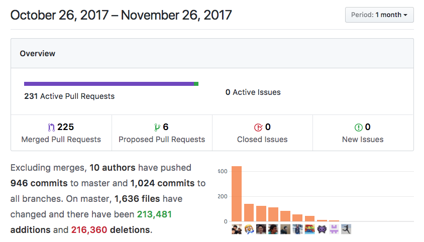 11월에는 작성한 코드 보다 삭제한 코드가 더 많다. 이렇게 리팩토링이 가능하다.