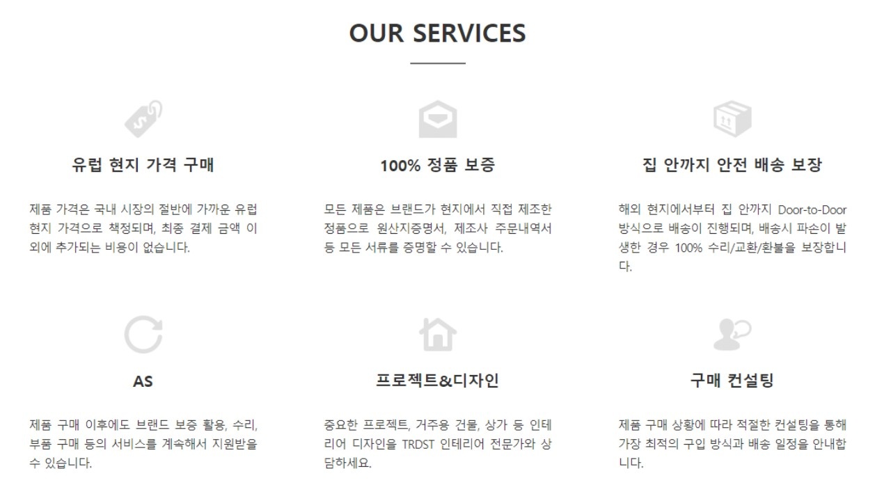 TRDST만의 프리미엄 서비스를 통해 해외 가구를 가장 쉽고, 안전하게 구매할 수 있습니다.