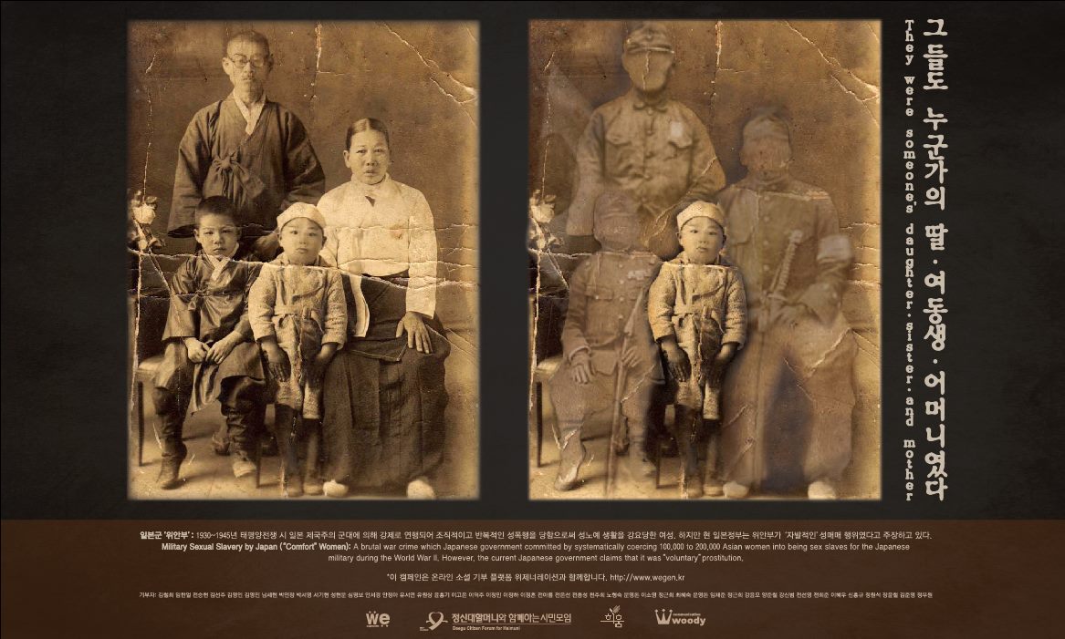 올해 2월. 두 청년의 자발적인 재능기부로 안국역에 위안부 문제를 알리는 지하철 광고가 게재된 바 있었다. 해외에서의 위안부 광고는 몇 번 있었지만 국내에서는 처음 있는 일이었다. 이 광고는 많은 반향을 불러일으켰으나 제작과 집행에 드는 금액으로 인해 더 연장되지는 못하고 철거되었다.