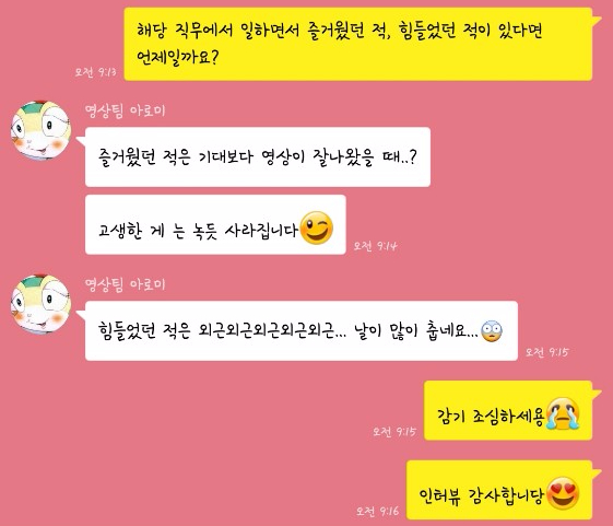 기획영상을 제작하고 싶어서 지원하게 되었습니다.