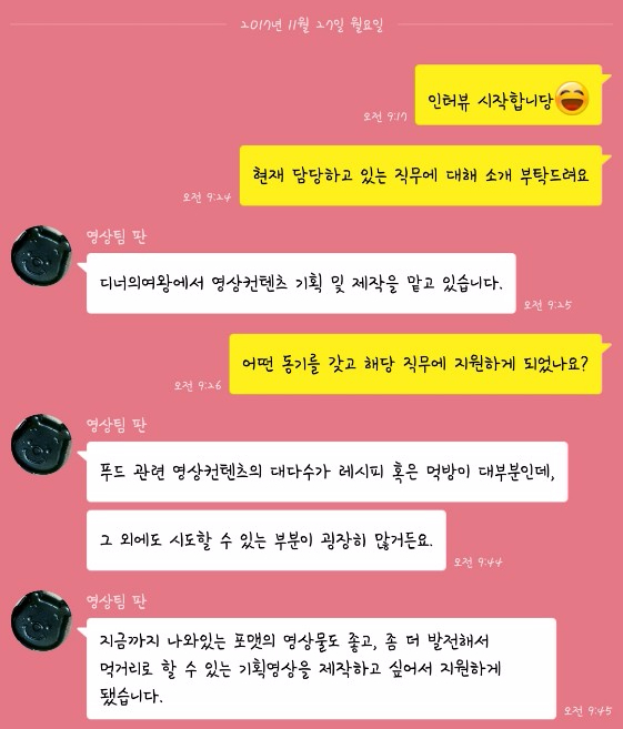 #디너의여왕 #콘텐츠 #영상팀 #팀원소개 #팀원인터뷰 #기업문화 #조직문화