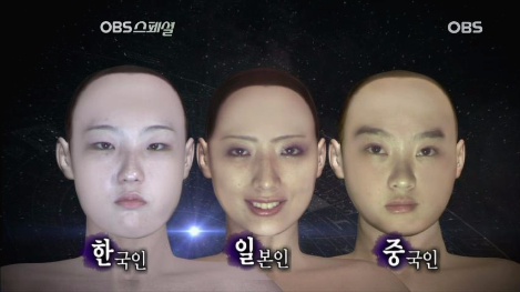 (출처:OBS 스페셜, 한중일 여성의 평균얼굴): 이걸 믿으라고?