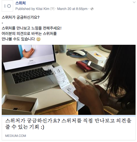 지난 포스팅 에는 스위처 고객 방문을 인원을 모집하기 위한 고객방문 설명&모집 글을 작성했다.