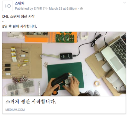 위의 과정을 거치면서 '스위처 작동 모습', '패키지' 등과 같이 무언가 완성된 파트를 소개해 "판매가 얼마 남지 않았다"란 생각을 심어주고 싶었다. 이에 기존에 판매 전 포스팅하였던 조립 영상을 떠올렸다.