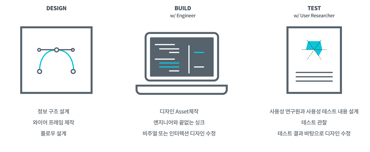 디자인, 개발, 테스트의 사이클을 돌며 각각 단계에 위와 같은 작업을 진행했다.