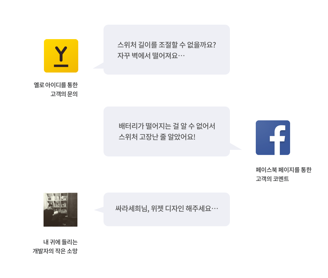 단 한 명의 디자이너만 근무하고 있었던 일손이 부족한 상황에서 앱 개발에 좀 더 집중할 수 있는 디자이너가 투입되자 희망을 갖은 팀원들이 개발해야 하는 기능, 현재 기획은 되어있지만 비주얼 디자인이 없는 기능 등등... 다양한 디자인 작업을 요청하며 환영해줬다. 팀원들 뿐만 아니라 외부에서도 페이스북 페이지, 옐로 아이디 그리고 고객 방문 등을 통해서 고객들의 요구가 넘쳐나고 있었다.