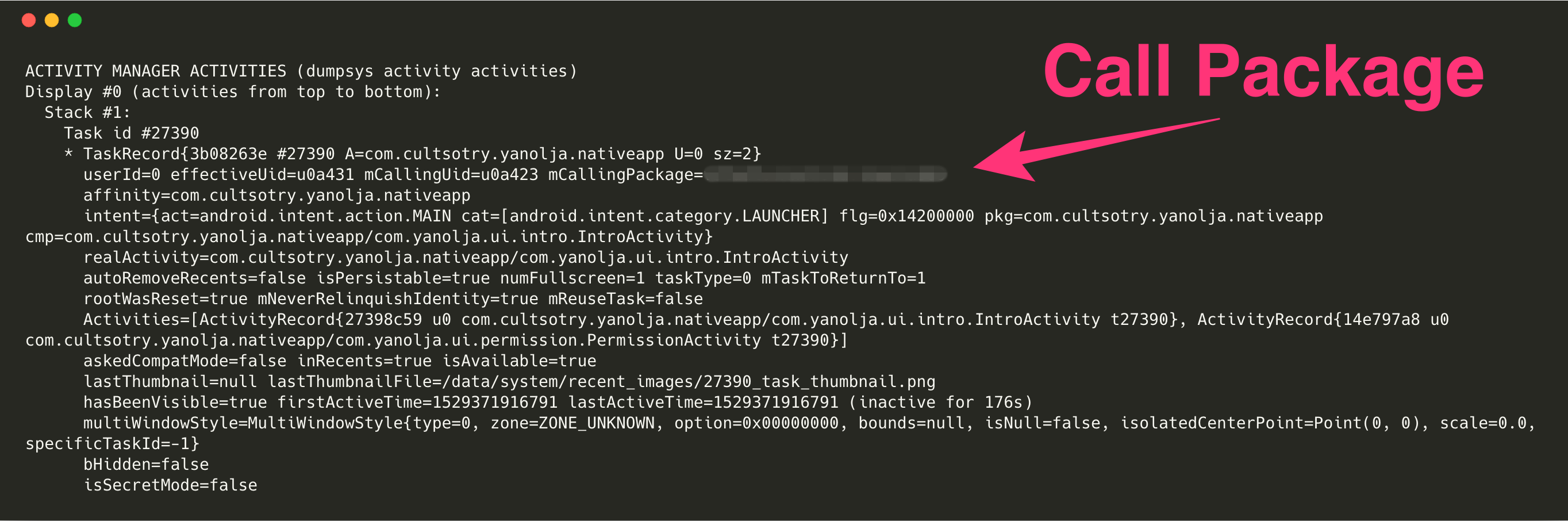 Dumpsys 에서 좀 더 Activity 와 관련된 정보를 얻기 위해서는 아래의 명령어를 적용해볼 수 있습니다.