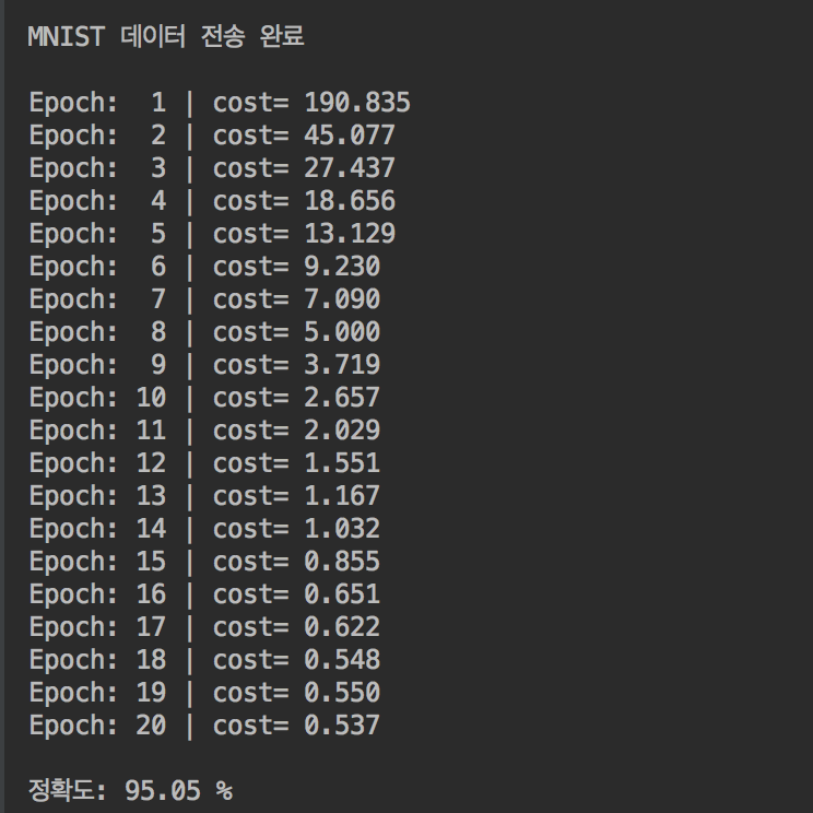 95% 정도의 정확도를 나타내는 것을 보입니다.