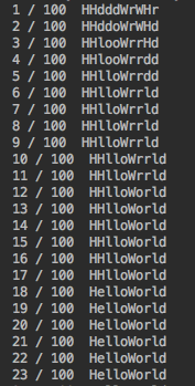 대략 20번 정도의 학습이면 원하는 HelloWorld를 출력하는 것을 볼 수 있습니다.