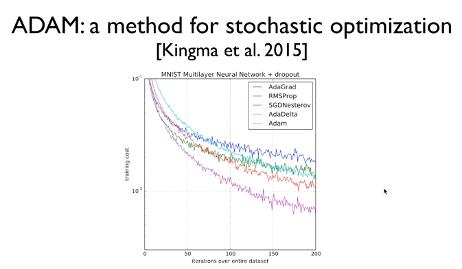 Sung Kim 교수님 강의에서 Adam은 현존하는 가장 성능 좋은 알고리즘으로 소개됩니다. > http://hunkim.github.io/ml/