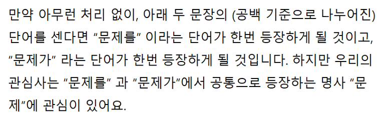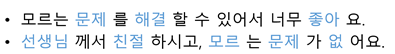 단어와 조사가 붙어있는 문장