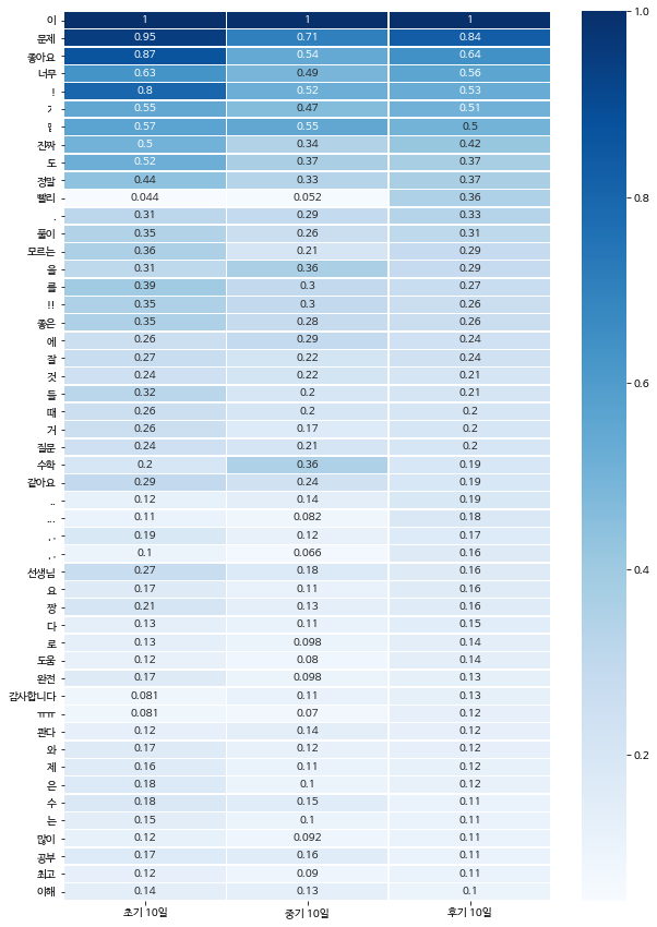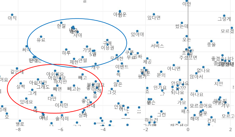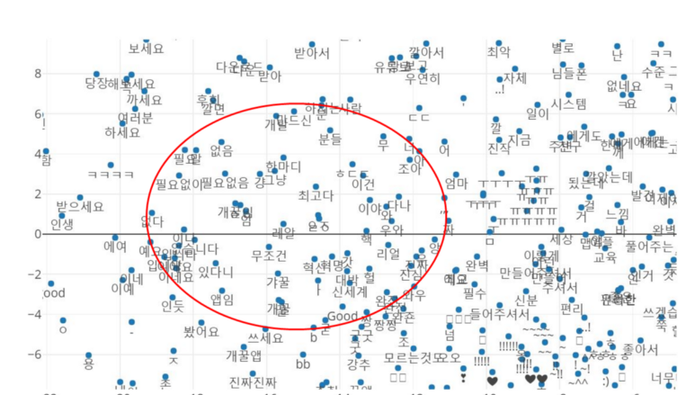 2년 동안의 콴다 리뷰를 바탕으로 학습된 단어의 벡터공간