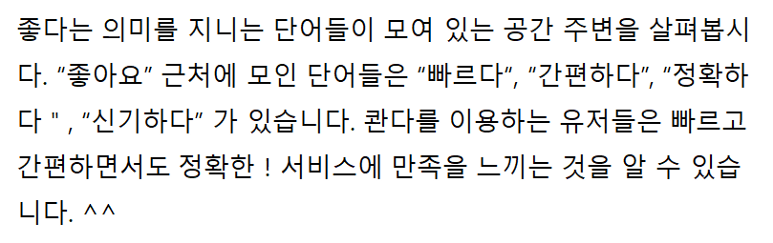 좋은 점과 관련된 단어 / 같은 맥락에서 등장한 단어들