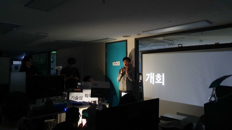 Eric의 짧은 개회사와 함께 해커톤의 결과물 발표가 시작되었습니다.