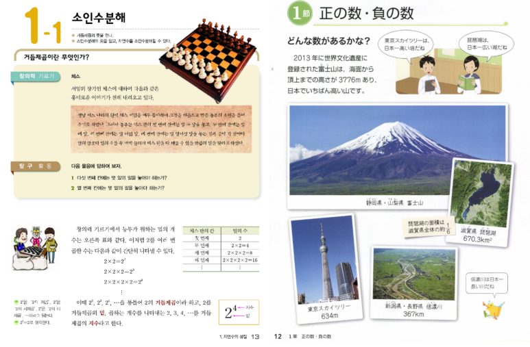 한국과 일본의 교과서, 양식에서 꽤 유사한 모습을 보인다.