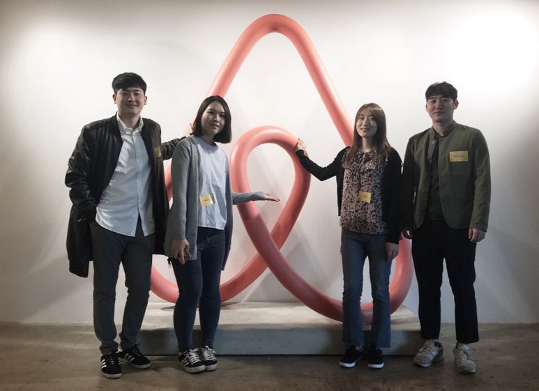 Airbnb 로고와 매스프레소 직원들