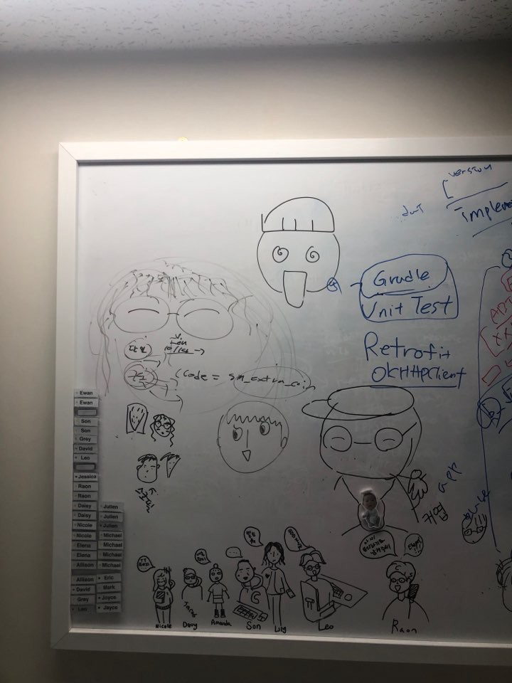 매스프레소는 다들 잘 아시다시피 팀원들이 함께 좋은 분위기에서 협업하는 문화를 가진 것도 장점중에 하나인데요! 사무실을 한번 쭉 둘러 보니 평소에 못보고 지나치던 화이트보드에 그려진 재미있는 광경을 발견했어요!