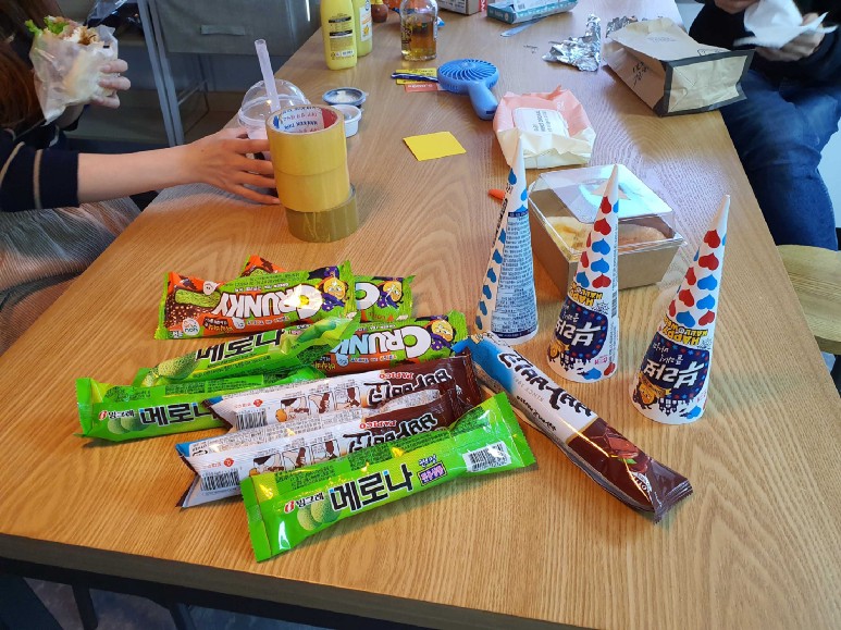 누군가 탕비실에 아이스크림을 잔뜩 사왔어요. 아이스크림 하나씩 먹으면서 짐정리를 마쳤습니다. 잘먹었습니다~!