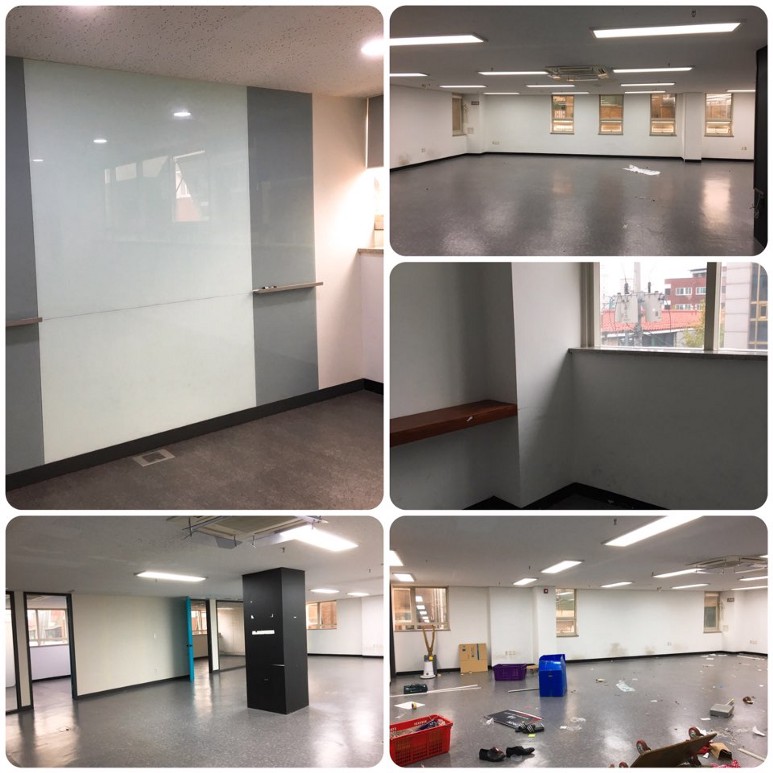 그동안 이렇게 사무실이 넓은지 몰랐어요! 마지막으로 많은 아이디어가 거쳐갔을 화이트보드를 자식보내는 마음으로 깨끗하게 닦아 봅니다.