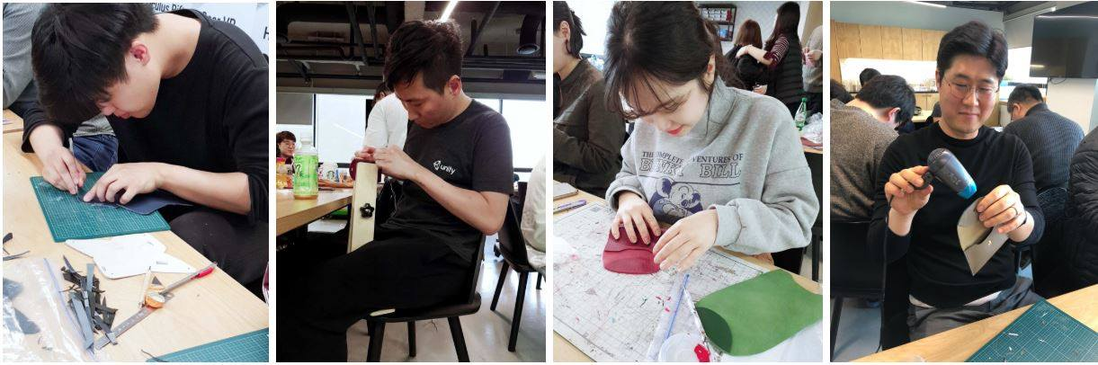올 2월에는 색다른 문화 활동으로 가죽 공예 체험을 기획해 유니티 코리아 사무실에서 진행됐습니다. 여권, 카드지갑, 네임테그 중 본인이 원하는 아이템 선택은 물론 디자인, 가죽 컬러, 단추 모양의 디테일까지 선택해 자신의 개성을 한껏 살릴 수 있는 시간이었습니다.