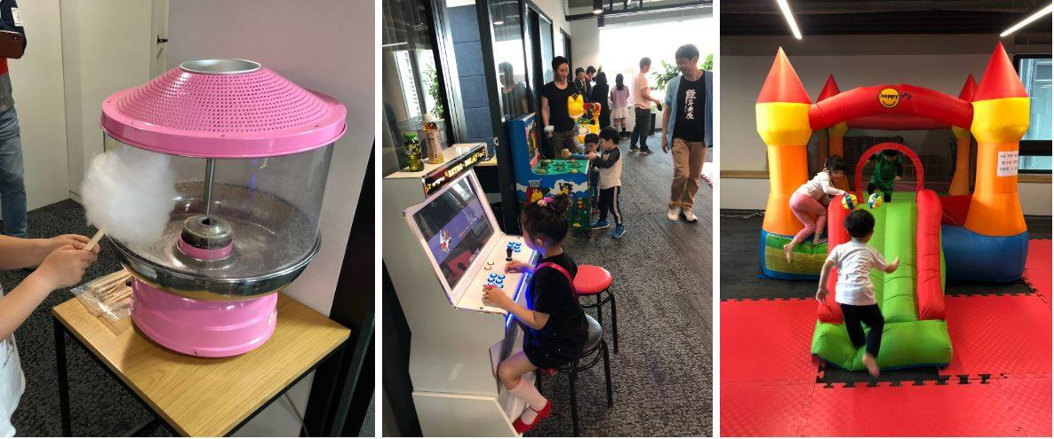 지루할 틈도 없이 셀프 솜사탕 기기, 미니 오락실, 실내 미끄럼틀 등 아이들의 관심을 살 수 있는 다양한 놀이가 준비되었습니다! 이 모든 활동은 유니티 코리아 사무실 공간 안에서 준비되었다는게 무색할만큼 아이들의 에너지와 웃음꽃이 넘쳐났습니다.